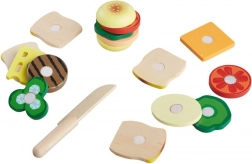 Ez a minőségi fa készlet úgy lett tervezve, hogy szórakoztassa a gyerekeket és közben támogassa fejlődésüket. A valósághű dizájnnal a gyerekek kedvük szerint készíthetnek szendvicseket különböző összetevőkből, mint kenyér, saláta, paradicsom, sajt és uborka.