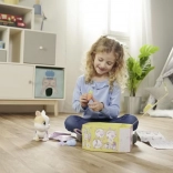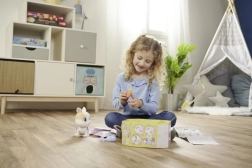 A nyuszit könnyen magaddal viheted a fogantyús papírcsomagolásnak köszönhetően, amely hordozható házikóként szolgál. Belül papírzacskókban rejtett meglepetések várnak – tematikus kiegészítők még több játékszcenárióhoz. A varázstappancs felfedi a kisállat nemét, és segít a gyerekeknek személyes kötődést kialakítani.