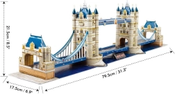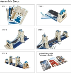 Fedezd fel Londont az egyik leghíresebb jelképe, a Tower Bridge megépítésén keresztül. A CubicFun National Geographic sorozatának 3D puzzle-je valósághű kidolgozást, pontos részleteket és kellemes építési élményt kínál ragasztó használata nélkül. A kb. 3 mm vastag, laminált nyomattal bevont hab elemek garantálják a kész modell szilárdságát és esztétikus megjelenését.
