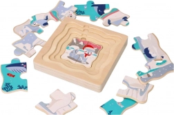 - 15 darabot tartalmaz, különböző arktiszi állatok illusztrációival, amelyeket a gyerekek könnyen megfoghatnak.