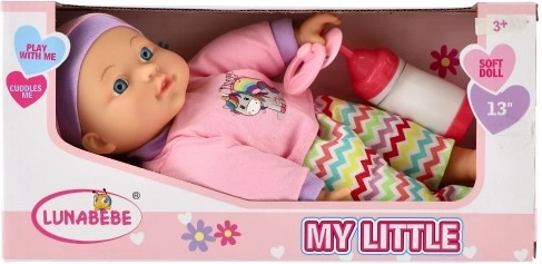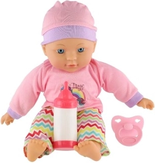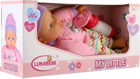 A baba cumisüveggel és cumival érkezik, ami valósághű játékélményt nyújt a gyermekek számára. Puha teste miatt szintén alkalmas szeretgetésre és biztonságérzetet ad.