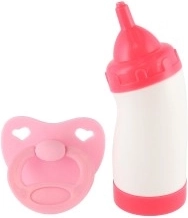 A csomag tartalmazza a cumisüveget és cumit, amelyek támogatják a valósághű játékot és gondoskodást.