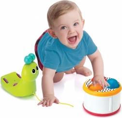 Szórakoztató csiga, amely könnyedén átalakul formázó válogatóvá és dobbá. A színes játék stimulálja az érzékeket és fejleszti gyermeke kézügyességét.