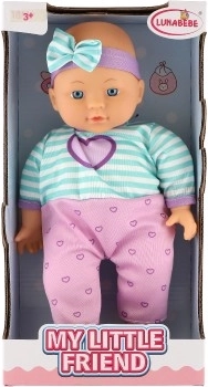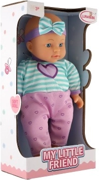 A My Little Friend baba ideális társ gyermeke számára. Színes ruhába öltöztetett, gyönyörű masnival, ez a baba serkenti a képzeletet és javítja az olyan készségeket, mint a felelősségvállalás és az empátia. A feje gumiból készült, míg a teste puha és textil, ami valósághű megjelenést biztosít. Magassága 30 cm, ami tökéletes a kis gyermekkezek számára.