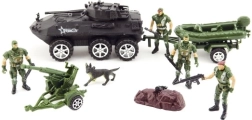 - Katonai figurák, páncélozott jármű, ágyú, csónak, kutya, kiegészítők
