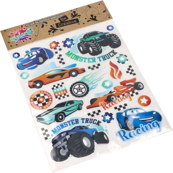 Széles választék színes autós motívumokból kis versenyzőknek és a monster truckok rajongóinak.