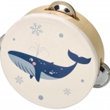 Ez a vidám bálnamintás gyermek tamburin nagyszerű hangszer az első ritmuskísérletekhez. A fa test, a feszes membrán és a fém csilingelők kellemes hangzást adnak, amely motiválja a gyerekeket a játékra és a zene felfedezésére.