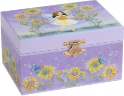 Ez a klasszikus zenélő doboz stílusú ékszerdoboz örömet szerez minden gyermeknek, aki elegánsan szeretné őrizni kincseit. A fedél felnyitásakor megszólal az opera Hattyúk tava lágy dallama, és a kis, forgó balerina táncra perdül a beépített tükör előtt. A napraforgó motívum játékos, mégis finom megjelenést kölcsönöz az ékszerdoboznak.