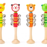 Fedezd fel a zene varázsát a bájos, állatmintás csörgőkkel. Minden csörgő kényelmes fa fogantyúval és több fém csengővel rendelkezik, amelyek rázáskor tiszta, örömteli hangot adnak. Remek az első zenei lépésekhez, közös játékhoz és otthoni mini zenekarhoz.