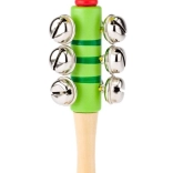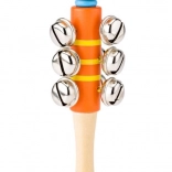 Kb. 20,5 × 4,5 cm-es méretének köszönhetően jól illik a gyerekek kezébe. A minőségi kidolgozás és az élénk színek felkeltik a figyelmet, és mozgásra motiválnak. A csengőkkel való játék fejleszti a ritmusérzéket, a kéz–szem koordinációt és a koncentrációt.