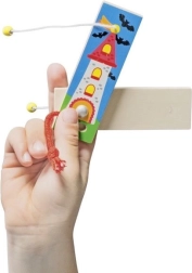 Ez a fa játék az okos zsinórmechanikával felfedezésre ösztönzi a gyerekeket, és fejleszti a koncentrációt valamint az ujjak ügyességét. A minőségi faanyagnak köszönhetően tartós, könnyű és kellemes tapintású.