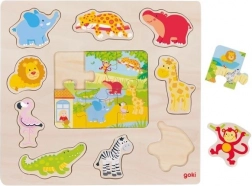 Fa beillesztős játék kisgyermekek számára állatkerti motívummal, amely 9 beilleszthető képet és egy 6 darabos puzzle-t kínál. Ideális a gyermekek koordinációjának és gondolkodásának fejlesztésére.