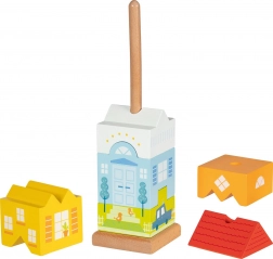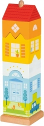 Itt egy tipikus városi ház. A készlet színes blokkokból áll, amelyek mindegyike más, és mindegyik egy kicsit más módon kapcsolódik az előzőhöz. Ez a városi ház 6 blokkból és egy alapból áll. A karó zsinórral van rögzítve. Minden következő blokk egy másik emelet és egy másik elem.