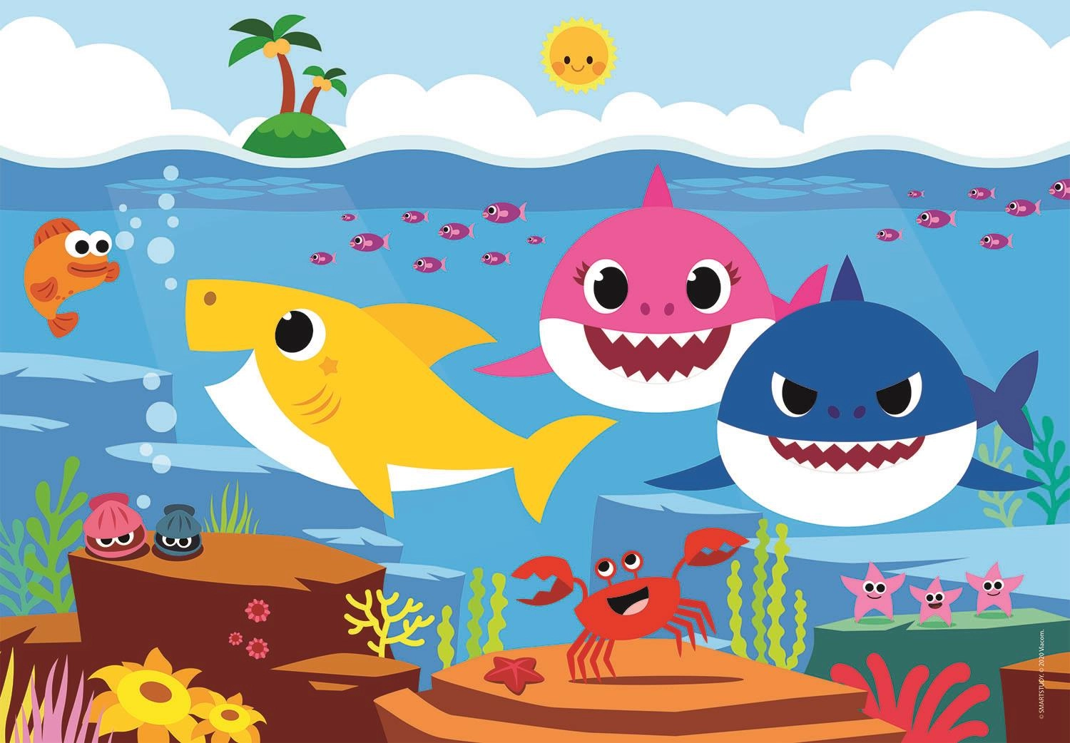 Vidám tengeri figurák és élénk színek ösztönzik a gyerekeket a kirakásra, fejlesztik a képzelőerőt és növelik az örömöt a kész képtől.