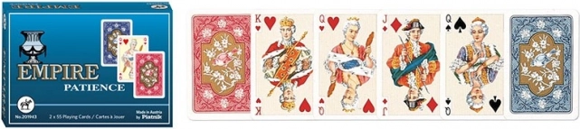 Kompakt méret és kiváló minőségű kidolgozás teszi ezeket a kártyákat ideális kiegészítővé otthoni játékhoz és utazáshoz is. A Pasziánsz Empire kártyák 3 éves kortól ajánlottak, és a klasszikus designnak és a magas minőségű kidolgozásnak köszönhetően népszerű választás a kártyajátékok rajongói között.