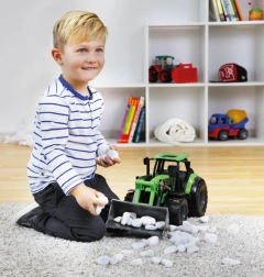 Fedezze fel a DEUTZ-FAHR Agrotron traktor részletgazdag modelljét, amely hűen utánozza a valódi gépet. A funkcionális homlokrakodó kanálnak köszönhetően a gyerekek könnyedén megbirkóznak a homok, kavicsok vagy kockák felrakodásával és szállításával. A minőségi műanyag hosszú élettartamot biztosít a mindennapos játék során.