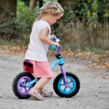 A futóbicikli 10"-os felfújható kerekekkel van felszerelve, amelyek sima haladást biztosítanak változatos felületeken. A mellékelt csengő növeli a biztonságot, miközben a teljes konstrukció megfelel az európai biztonsági előírásoknak, garantálva a termék minőségét és megbízhatóságát.