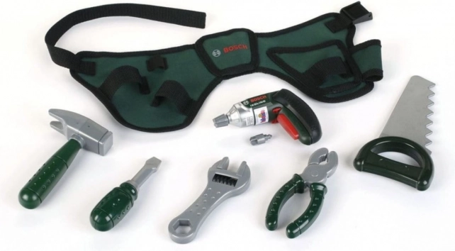 A játékszerszám készlet eszközei a valós Bosch eszközöket utánozzák, ami lehetővé teszi a gyerekek számára a valósághű játékélményt.
