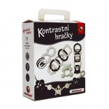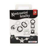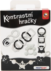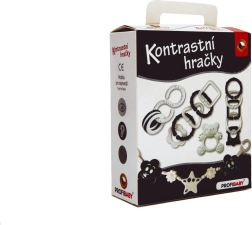 Ez a fekete-fehér kontrasztos szett a legkisebbek számára készült, akik még nem különböztetik meg a színeket. A nagy kontrasztú minták természetesen vonzzák a figyelmet, támogatják a vizuális stimulációt és a koncentrációt. Az átgondolt formáknak köszönhetően a játékok könnyen megfoghatók a kis kézzel, segítik a fogóreflex és a szem–kéz koordináció gyakorlását.