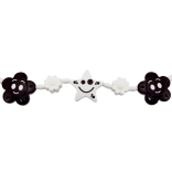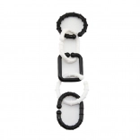 A fekete-fehér, virágos és csillagos függődísz felkelti a baba figyelmét és lefoglalja séták közben. Könnyű rögzítés kampókkal babakocsira vagy kiságyra.