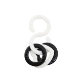Összekapcsolható szilikon gyűrűk domború mintával finoman masszírozzák az ínyt, fejlesztik a tapintást és könnyű megfogást biztosítanak. S-kampók a játékok babakocsihoz vagy autósüléshez való rögzítéséhez.