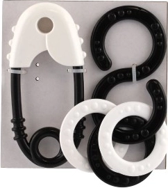 klasszikus biztosítótűt és nyolcast tartalmaz gyűrűkkel.