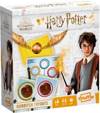 Lépj be a kviddics pályára, és válj a házak bajnokává! Ebben a pörgős Quidditch Tryouts játékban a Shuffle-től kártyáidat karikakártyákra teszed, gyorsan reagálsz a színekre, és megpróbálod túljárni ellenfeleid eszén. Miután az összes karikakártya lekerült, az a játékos nyer, akinek a legmagasabb a pontszáma – talán épp a Griffendél új játékosa!