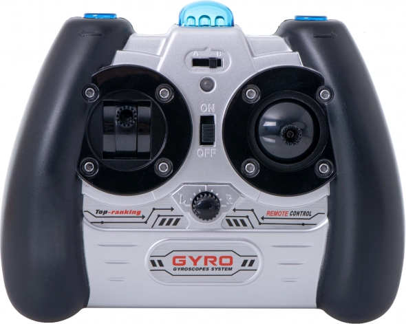A pontos távirányító dupla joystickkal teljes irányítást biztosít a repülési irány és magasság felett.