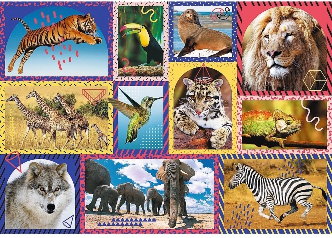 Ez az 1000 darabos kirakó a vadállatok színes kollázsmotívumával szórakozást, kikapcsolódást és agytornát kínál. A minőségi daraboknak köszönhetően pontosan illeszkedik, és elkészülte után egy 68,3 × 48 cm méretű, látványos képet ad, amely ideális keretezéshez.