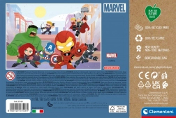 A CLEMENTONI Play for Future öko sorozat gyerekpuzzléja 104 masszív darabon hozza el a MARVEL AVENGERS kedvelt hőseit. 100% újrahasznosított papírból, biológiailag lebomló laminálással és nem mérgező anyagokból készül. Összerakva a puzzle mérete körülbelül 48,5 × 33,5 cm, és ismét 100%-ban újrahasznosítható.