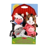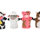 A készlet négy farm állat bábját tartalmazza: tehenet, bárányt, malacot és lovacskát, ideális mesetörténetek kitalálásához.