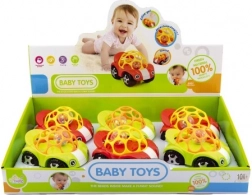 A műanyag autó úgy lett tervezve, hogy felkeltse a gyerekek figyelmét vidám színeivel<\strong> és csörgő hangjaival<\strong>, amelyeket a belső golyó okoz. A puha és lyukas tetőnek<\strong> köszönhetően könnyen fogható még a legkisebbek számára is.