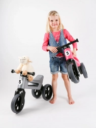 A FUNNY WHEELS Rider Sport 2 az 1-ben egy cseh futóbicikli, amely alkalmazkodik a gyermek életkorához és készségeihez. Kezdd a stabil háromkerekű verzióval, majd könnyen válts a kétkerekű kivitelre az egyensúly gyakorlásához. Tartós, egészségre ártalmatlan műanyagból készül, és a csendes abroncsoknak köszönhetően otthonra és a járdára is megfelelő.