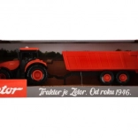 Fedezze fel a mezőgazdasági technikát a Zetor traktor modellel, mely úgy van tervezve, hogy maximális szórakozást nyújtson valósághű funkcióival. Ez a traktor nemcsak úgy néz ki, mint az igazi, hanem valós hangokat ad ki és működő világítással rendelkezik. A plató egyszerűen leválasztható, ami változatos játékot és a képzelet fejlesztését teszi lehetővé.