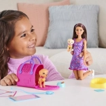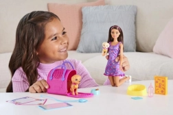 A szórakoztató Barbie gondoskodása a kutyákról készlet arra bátorít, hogy gondoskodj, és törődj az állatokkal. Tartalmaz egy Barbie babát, két kutyust és színváltó funkciós kiegészítőket.