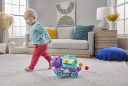 Induljatok vidám sétára a Fisher-Price interaktív Dino játékával, amely színes megjelenésével és tanulást segítő funkcióival örömet szerez a gyerekeknek. Elég egy kicsit meglökni vagy magatok után húzni, és figyelni, ahogy a színes labdák pattognak benne.