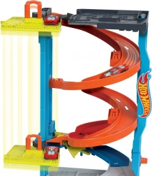 Versenymódban helyezz el 2 darab 1:64-es kisautót a felvonóba, emeld őket a tetejére, aktiváld a kaput, és nézd, ahogy spirálokon át száguldanak a cél felé. Egyetlen pályás módban a torony kb. 64 cm magas, és bőséges sebességet és szórakozást kínál. A szett kompatibilis más HOT WHEELS pályákkal, így könnyedén építhetsz kiterjedt várost tele kaszkadőr kihívásokkal (a további szettek külön kaphatók). A színek és dekorációk eltérhetnek.