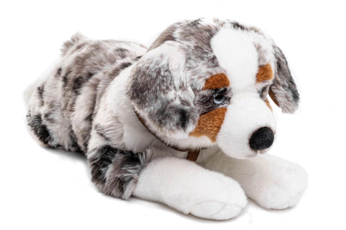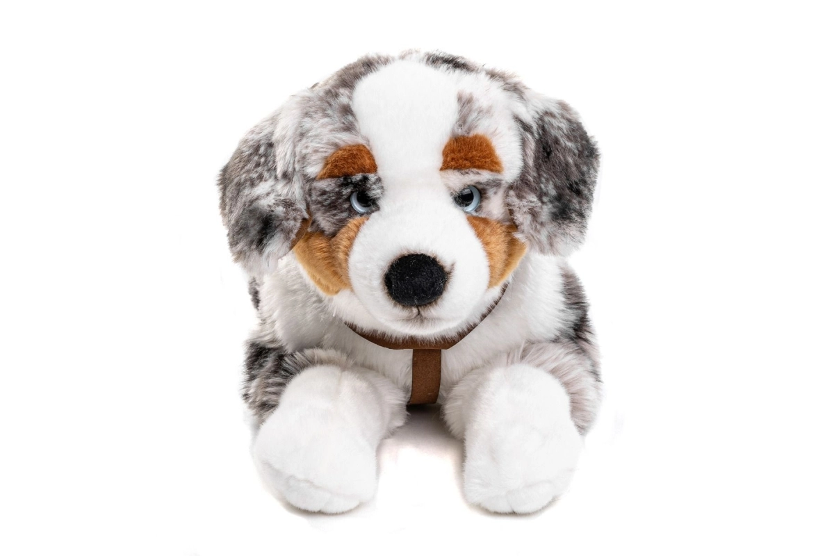 Ez a plüss ausztrál juhászkutya elbűvöl hű részleteivel, finom szőrével és kellemes, ölelni való méretével. Puha, ölelgethető és a legkisebbek számára is biztonságos. A csomag része a hám, amellyel kis gondozója képzeletbeli sétákra viheti kutyus barátját.