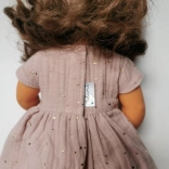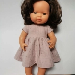 Aranyos muszlin ruha 38 cm-es babákhoz finom rózsaszín színben. Lengyelországban készült, kellemes tapintású, finom textúrájú anyagból. Könnyű karbantartás – alacsony hőfokon vasalható, ideálisan gőzzel frissíthető, hogy az anyag megőrizze a struktúráját. 3 éves kortól ajánlott és megfelel a CE szabványnak.