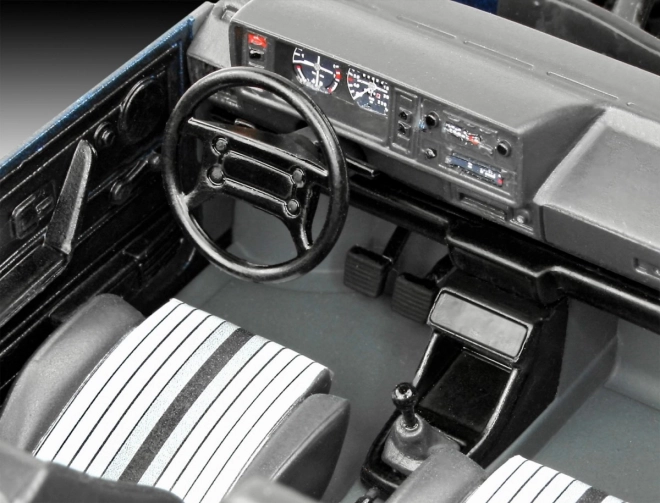 A szett tartalmazza az első generációs VW Golf német kompakt autó modelljét, 6 alap színt, ecsetet és ragasztót.
