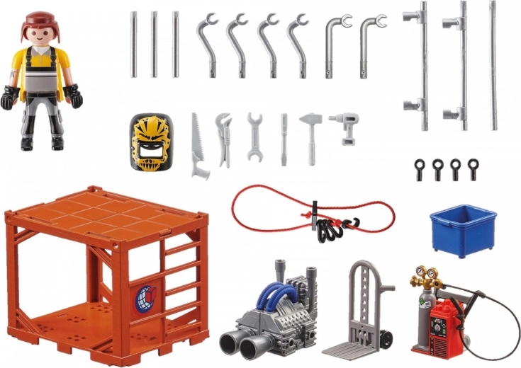 - 1 hegesztő figura, konténermodul, motor, szerszámok és egyéb kiegészítők