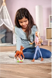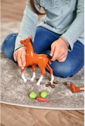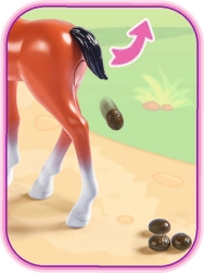 Steffi baba egy aranyos pónival, amely szórakoztató funkcióval nyűgöz le. Ha a farkát oldalra tolod, a póni kakil. A készlet része a póni ápolásához szükséges kiegészítők.