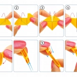 Érthető leírás és vizuális folyamatábrák vezetnek végig minden hajtáson. Az alapmodult három lépésben össze tudja hajtani, ezután pedig ragasztó nélkül építi tovább.