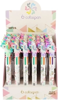 A vidám, többszínű, unikornis mintás toll feldobja az írást és a kreativitást. 6 különböző tintaszínt kínál, amelyeket gyorsan válthatsz nyomással. Iskolába és otthonra is ideális, kényelmes fogással és játékos dizájnnal gyerekeknek és az unikornisok szerelmeseinek.