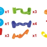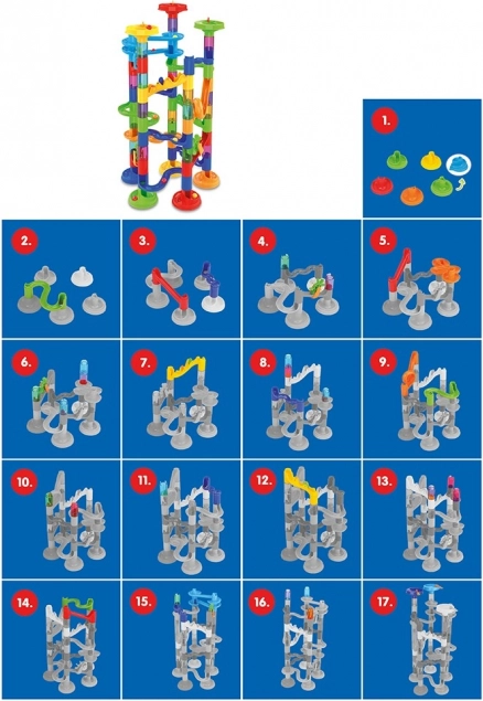 78 elemes golyópálya készlettel! Ez a kreatív készlet lehetővé teszi a gyerekeknek, hogy különféle pályákat építsenek a golyóknak, miközben fejlesztik logikus gondolkodásukat és finommotorikájukat.