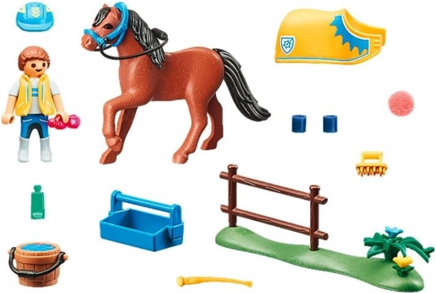 Ez a részletes szett a walesi pónival támogatja a gyerekek fantáziáját és finommotorikáját. A valósághű kiegészítőknek köszönhetően a gyerekek élvezhetik a napsütéses kirándulásokat, a kefélést, a sörény tisztítását és a paták ápolását is.
