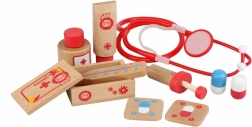 Minden kis orvos gyűjteményének nélkülözhetetlen darabja ez a bőröndben tárolt fa orvosi szett. Tartalmaz mindent, ami szükséges az emberek vagy állatok gyógyításának rajongói számára. A piros és fehér kombináció tökéletesen visszaadja az orvosi eszközök igazi jellegét, így minden, a világot felfedezni vágyó gyermeket elvarázsol.