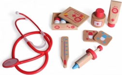 Lenyűgöző fa orvosi szett bőröndben, amely minden 3 éves és idősebb gyermek számára készült.