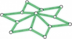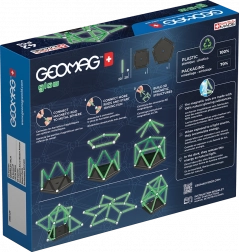 A GEOMAG Glow egy eredeti mágneses építőkészlet, amely lehetővé teszi, hogy mágneses rudak és acél golyók segítségével végtelen számú konstrukciót hozz létre. A foszforeszkáló elemeknek köszönhetően a modellek megvilágítás után a sötétben gyönyörűen ragyognak – ideális a szórakoztató kísérletezéshez és a látványos bemutatókhoz.