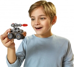 Könnyen összeszerelhető truck masszív abroncsokkal, részletes karosszériával és működő kilövővel csatákhoz és kaszkadőrmutatványokhoz.
